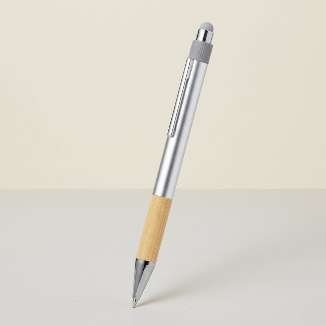 Bolígrafo de aluminio reciclado con empuñadura de corcho y touch