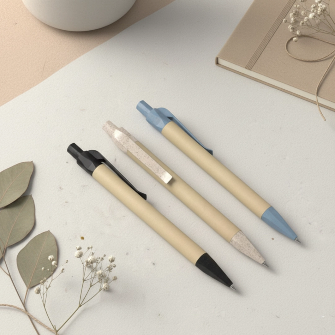Bolígrafo metálico de acción giratoria + caja de papel duro
