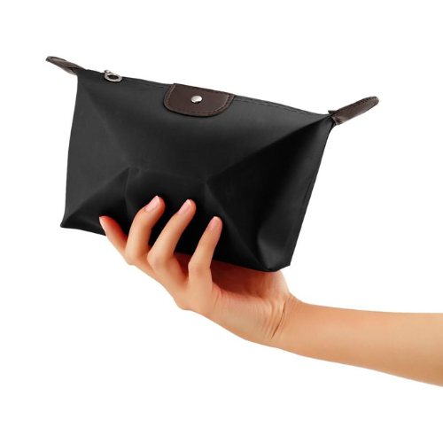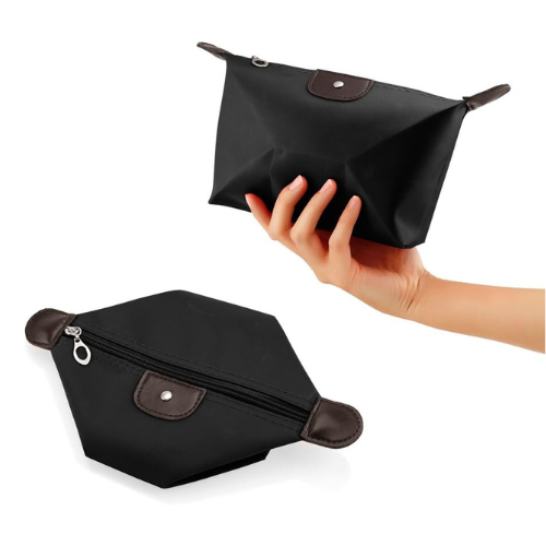 Perfecta para organizar tus esenciales de belleza o como un práctico estuche de viaje. Esta cosmetiquera combina un material de PU (Poliuretano) duradero y fácil de limpiar con un diseño plegable y sofisticado. Su cierre magnético tipo broche con detalle en contraste le otorga un toque ejecutivo y seguro.
