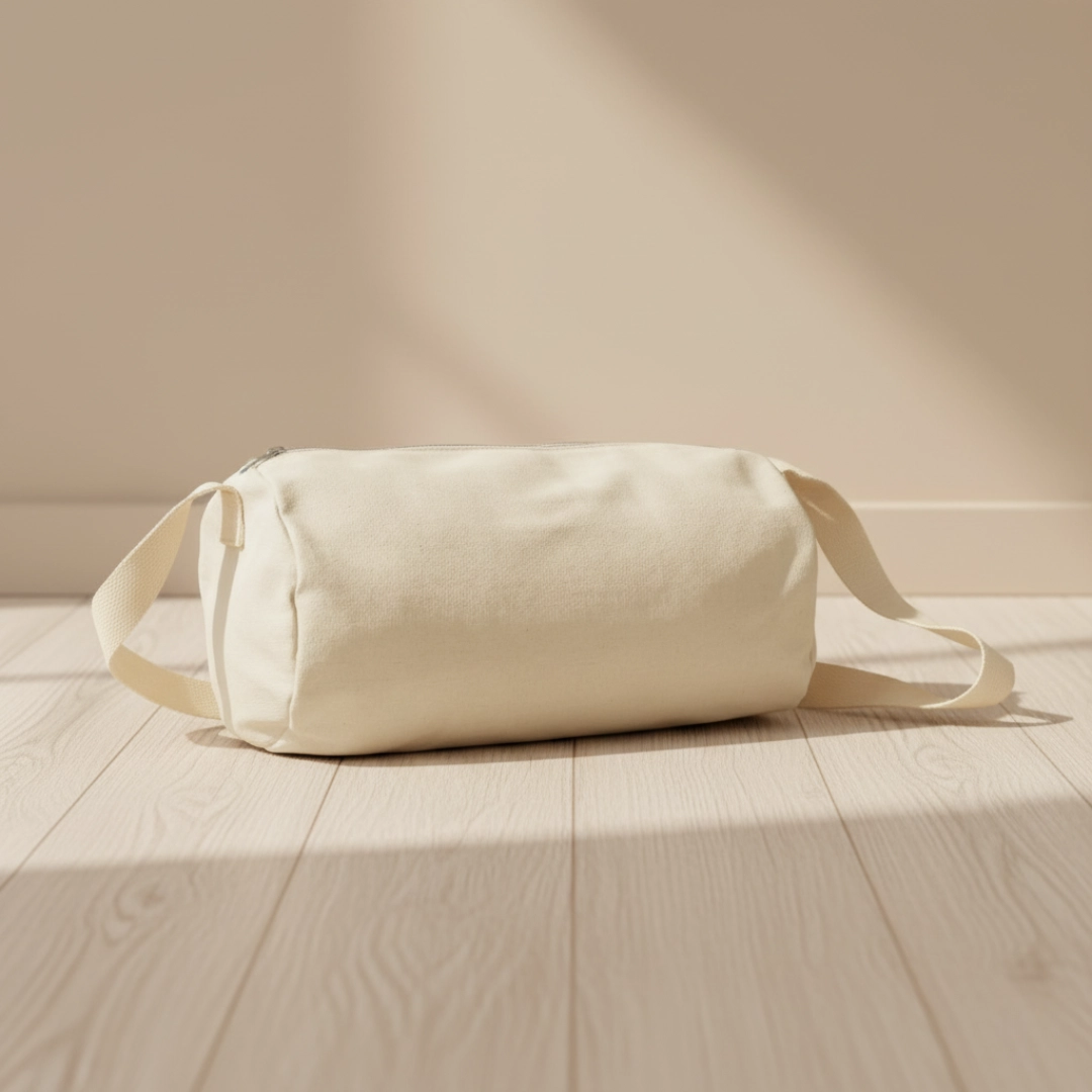 Lleva tus esenciales con comodidad y estilo. Esta bolsa es perfecta para el gimnasio, un fin de semana corto o como equipaje de mano. Está fabricada en resistente algodón en un color beige neutro y versátil.