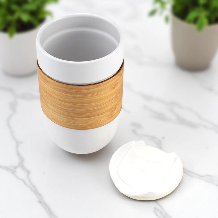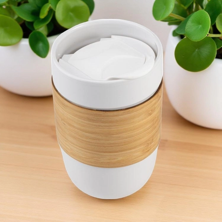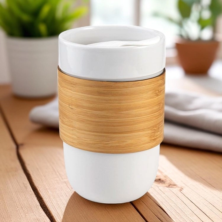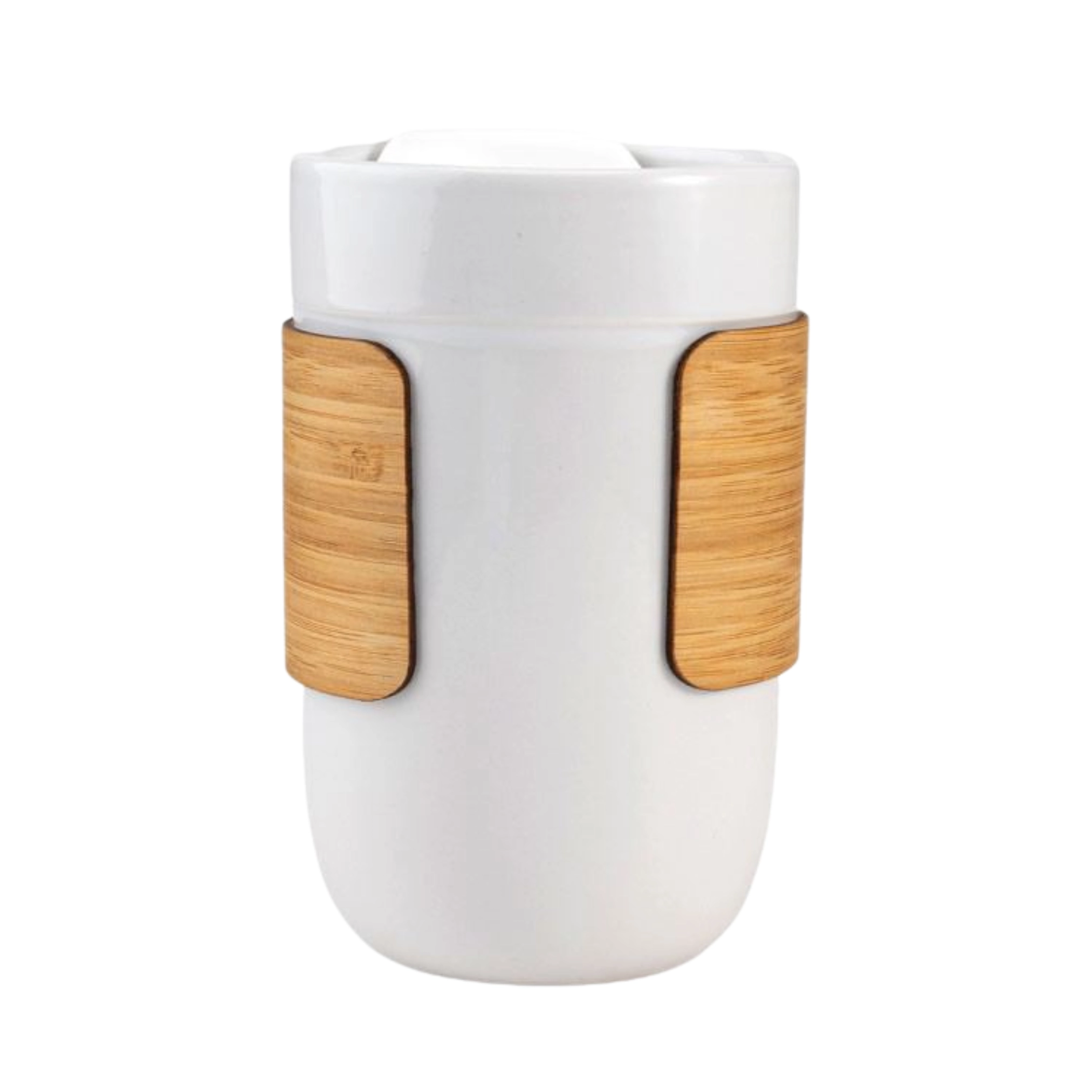 Disfruta de tu bebida favorita en este jarro que combina materiales naturales y diseño moderno. El jarro de cerámica blanca de alta calidad se complementa con una elegante banda aislante de bambú natural que protege tus manos del calor y le añade un toque distintivo y sostenible.