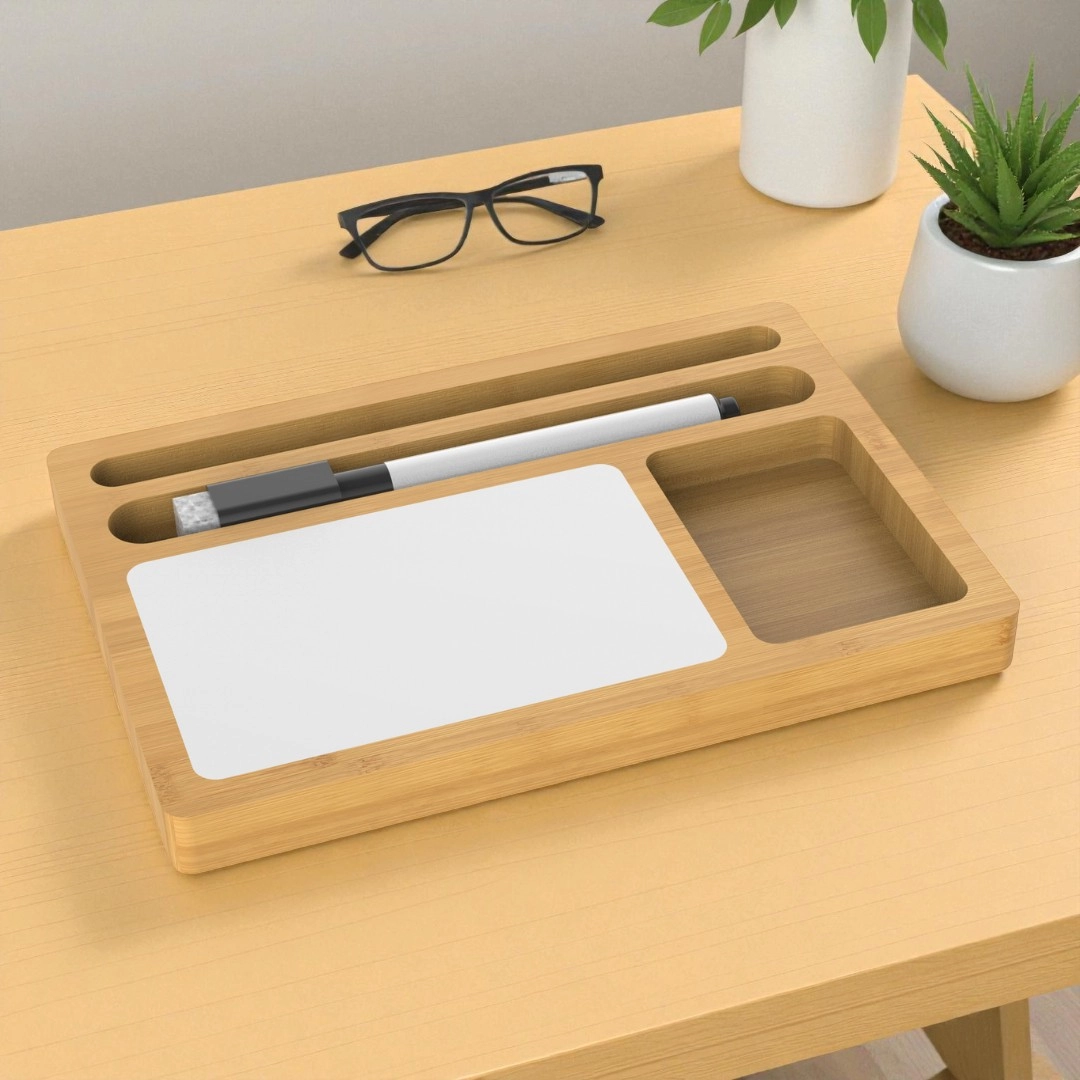 Mantén tu escritorio organizado y tus ideas a la vista con este accesorio multifuncional de la línea Nature. Fabricado en bambú, combina la calidez de un organizador con la funcionalidad de una pizarra blanca para notas rápidas.