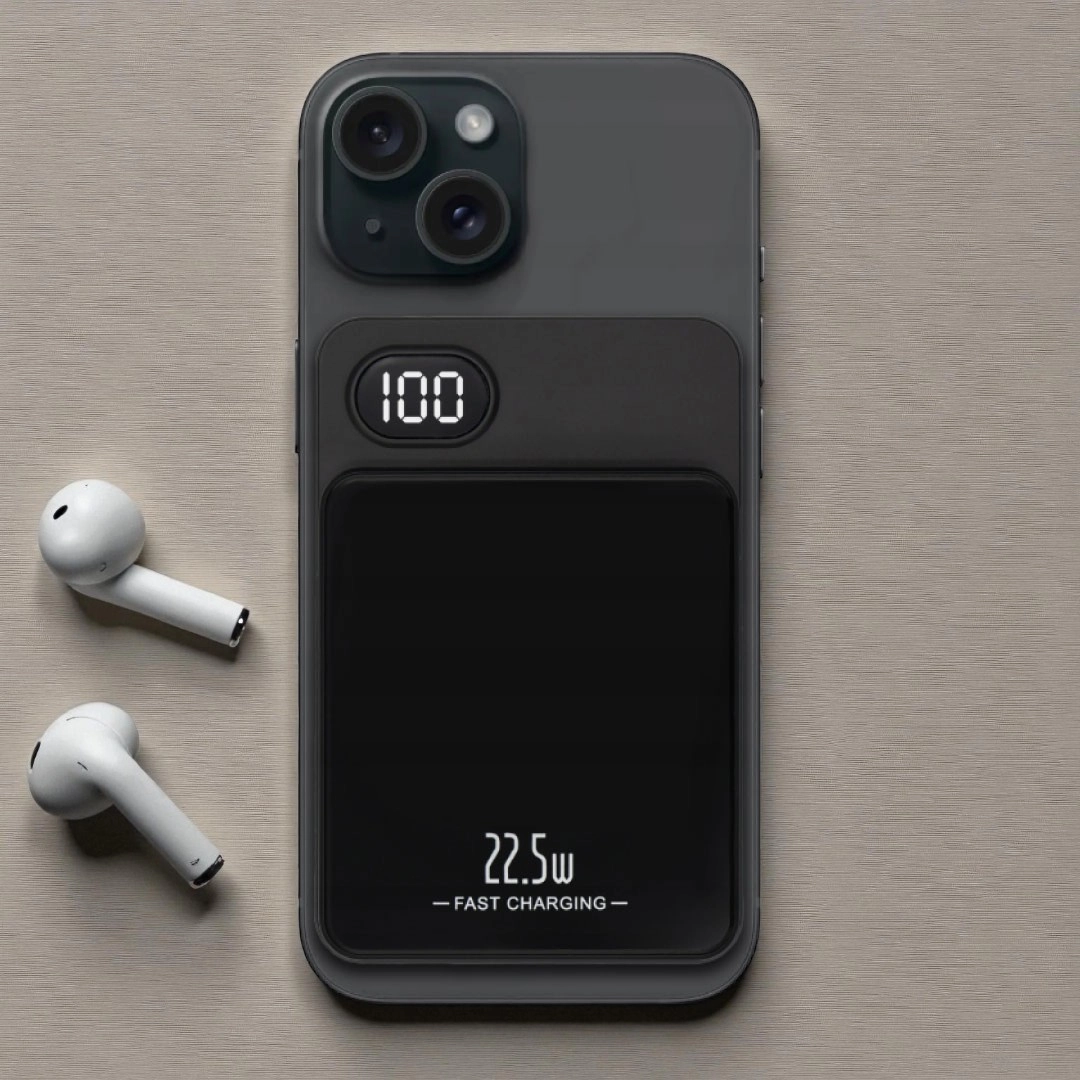 No te quedes sin batería con este cargador portátil ultra potente y versátil. Este Power Bank no solo ofrece una carga por cable ultrarrápida de 22.5W, sino que también cuenta con tecnología de carga inalámbrica magnética (compatible con los últimos modelos de iPhone y Android).