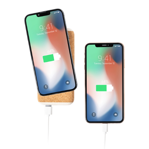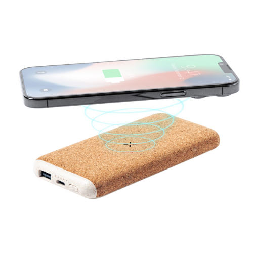 Combina potencia y sostenibilidad con este Power Bank de alta capacidad. Su diseño es único y eco-friendly, ya que está fabricado con una mezcla de corcho natural y plástico de paja de trigo reciclable, reflejando un compromiso con el medio ambiente.