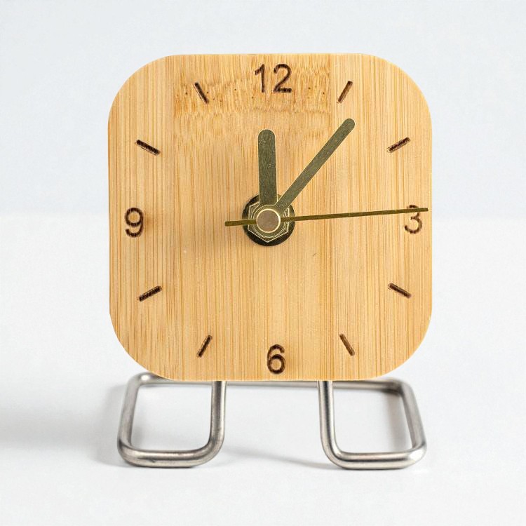 Añade un toque natural y moderno a tu oficina con este elegante reloj de mesa. Fabricado con bambú barnizado y resistente, se sostiene sobre una base de acero inoxidable de diseño minimalista.