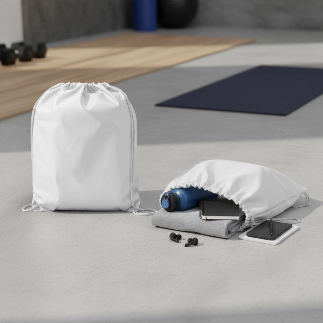 Su diseño simple y ligero la hace perfecta para guardar ropa, calzado o artículos promocionales. Utiliza un cordón para cargarla cómodamente y para asegurar su cierre.