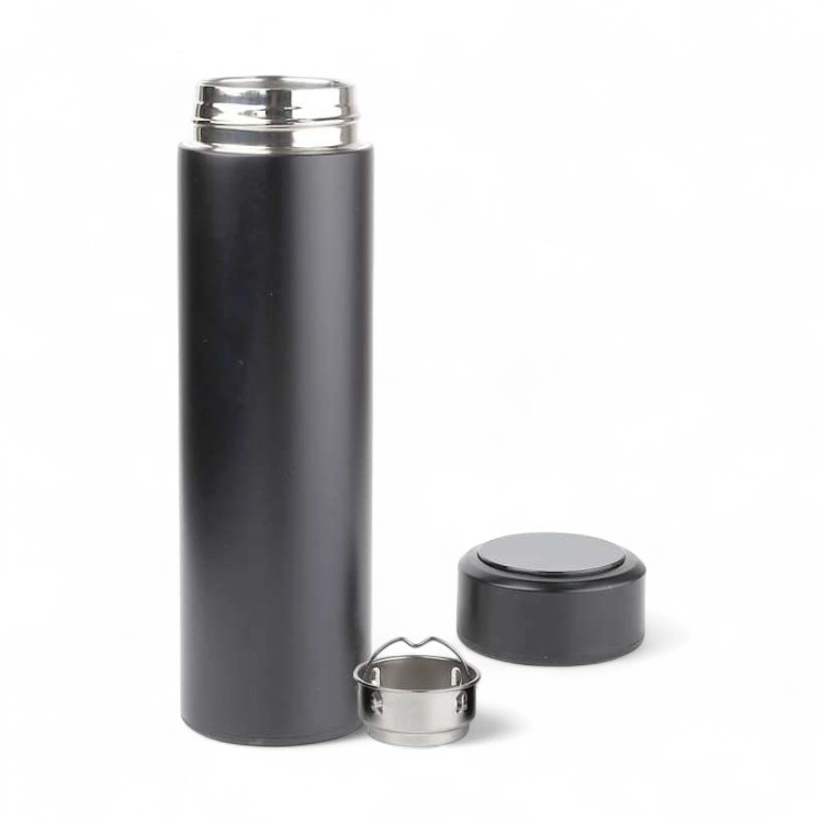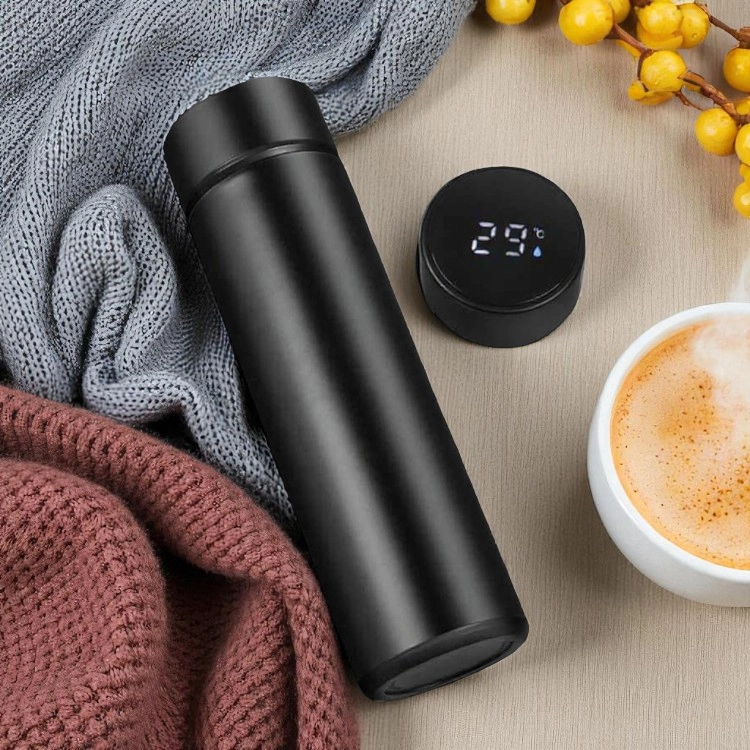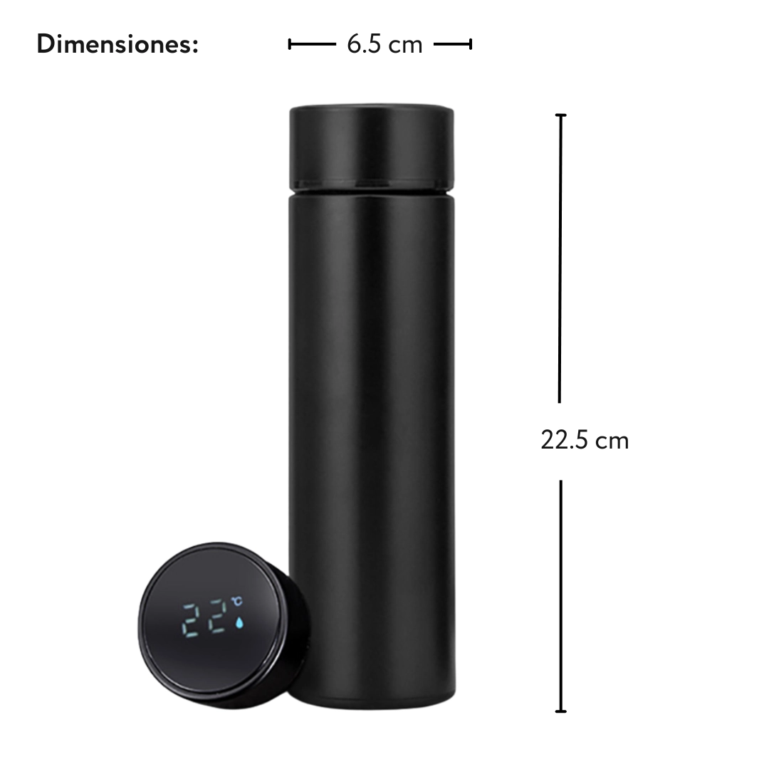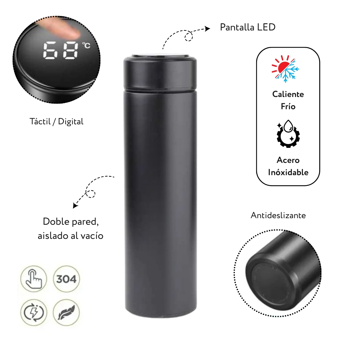 Descubre la forma más inteligente de mantener tus bebidas a la temperatura perfecta. Este termo digital de 500 ml cuenta con una tapa con pantalla táctil LED que te muestra la temperatura exacta del líquido en su interior. Fabricado en acero inoxidable de alta calidad, es ideal para conservar tus bebidas frías o calientes por horas. Con un diseño minimalista y elegante en color negro, es el accesorio perfecto para tu rutina diaria.