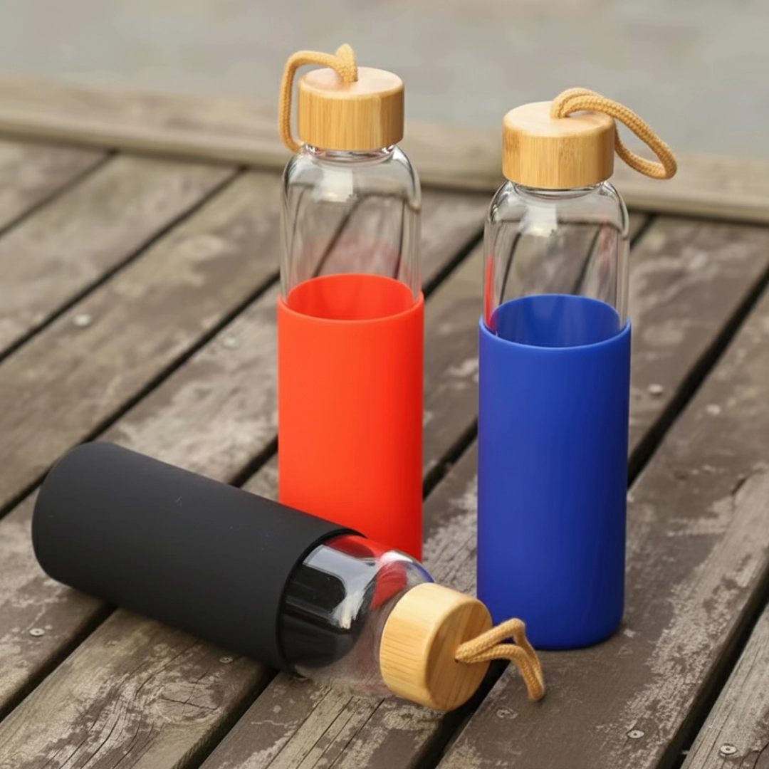 La manga de silicón de color no solo protege el vidrio de impactos, sino que también funciona como aislamiento para guardar la temperatura de tus bebidas y ofrece un agarre antideslizante.
