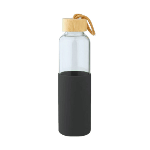 Adopta un estilo de vida sostenible con este elegante tomatodo reutilizable. Fabricado en vidrio resistente, es la alternativa perfecta y duradera a las botellas de plástico. Su diseño moderno incluye una distintiva tapa de bambú con un práctico cordón de algodón para un fácil transporte.