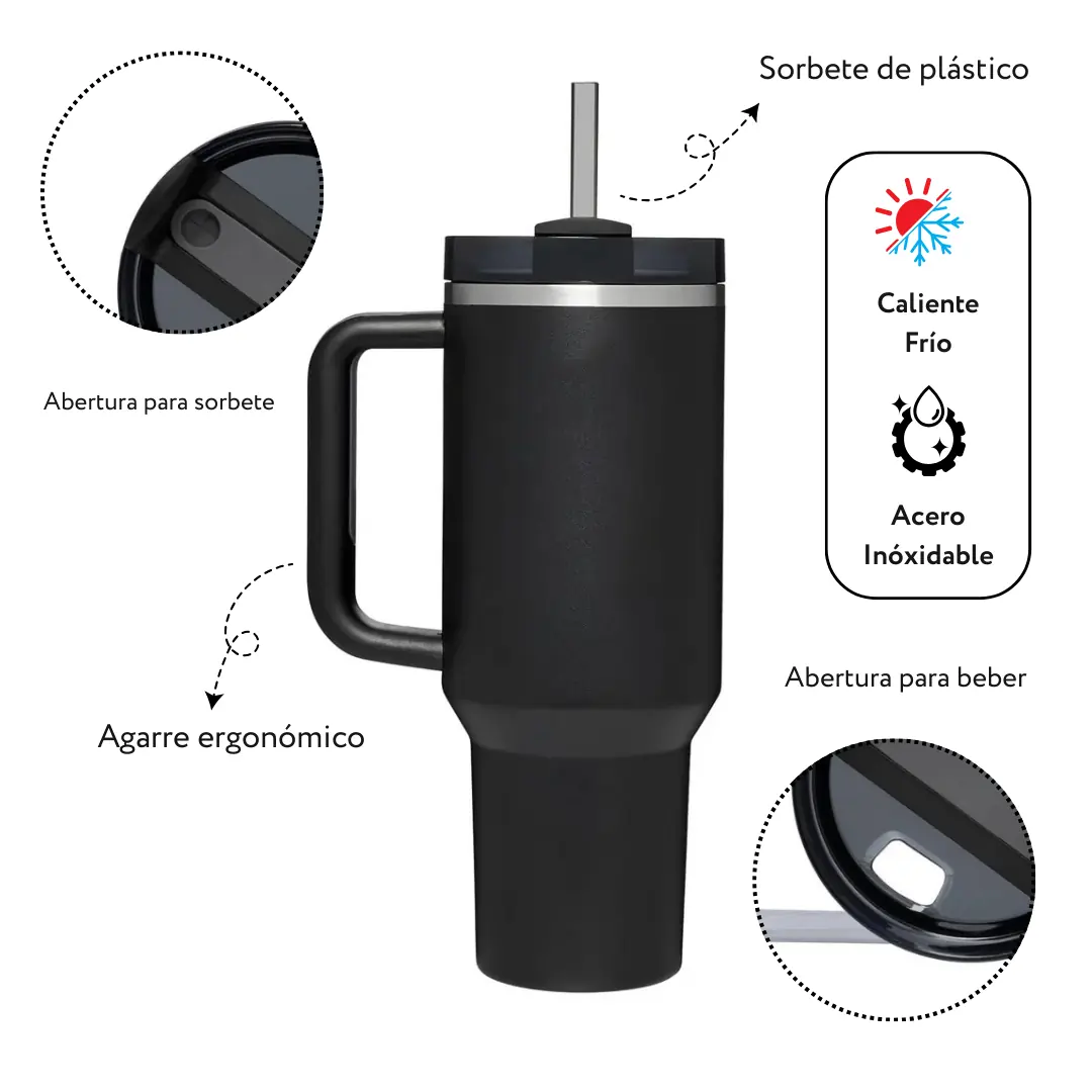 Tumbler 40 onz tipo Stanley – Vaso de acero inoxidable aislado al vacío con tapa y sorbete