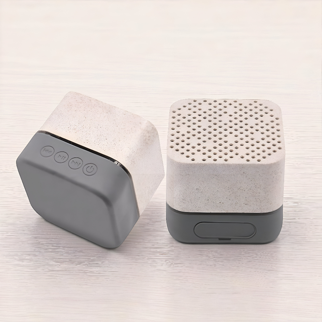 Combina un sonido nítido con un diseño eco-amigable con este altavoz Bluetooth compacto. Ideal para quienes buscan tecnología con conciencia ambiental, su cuerpo está fabricado con plástico que incorpora fibra de trigo, dándole un acabado natural y distintivo.